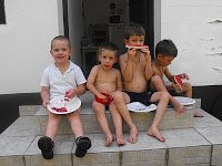 Áterndeződtünk – Marci ölbe, Misi nyakba, Olivér babakocsiba, szegény Palkó hősként gyalogolt. 40 fok. Fél egy.
